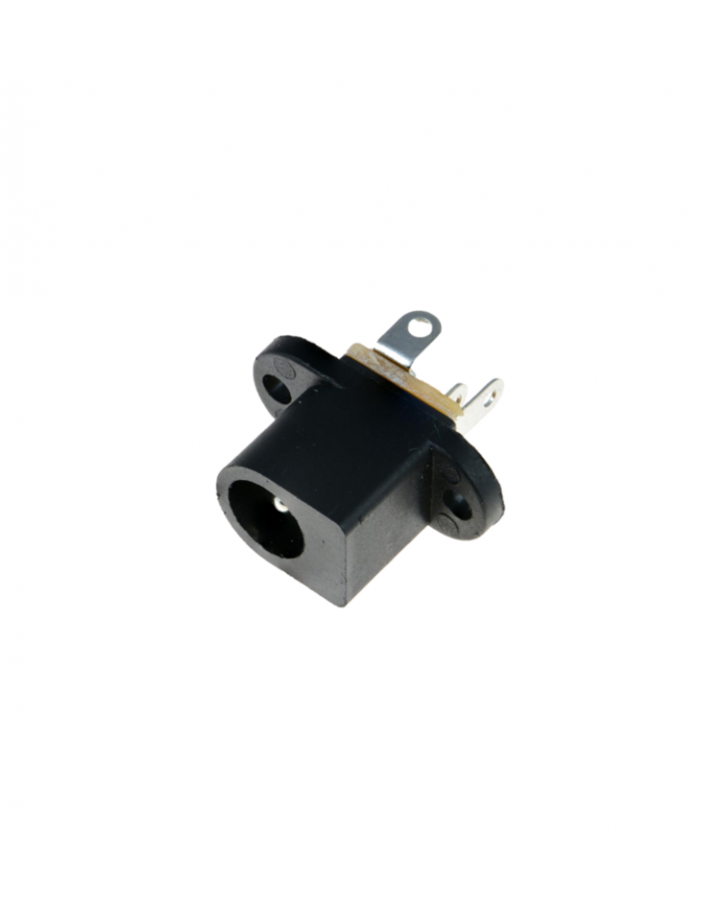 Enchufe tipo jack, toma de corriente DC 2 pines. Tamaño: 19.65mm (largo) x 9mm (ancho) x 15.20mm (orificio de chasis).