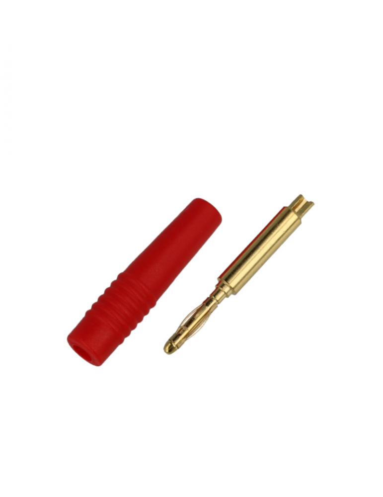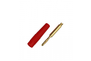 Conector tipo banana plug, con aislante plástico PVC, terminal de latón, muelle de cobre/berilio y superifcie chapado en oro. Tamaño del conector 36mm (largo) x 6mm (diámetro), 2mm (plug).