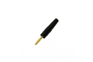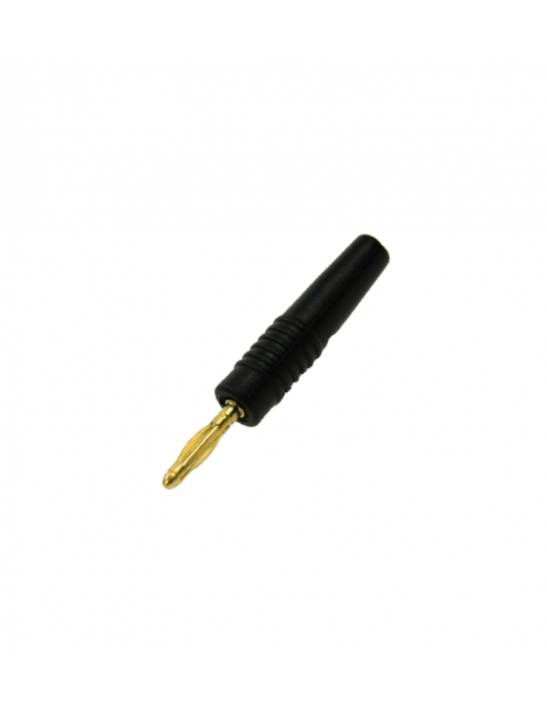 Conector tipo banana plug, con aislante plástico PVC, terminal de latón, muelle de cobre/berilio y superifcie chapado en oro. Tamaño del conector 36mm (largo) x 6mm (diámetro), 2mm (plug).