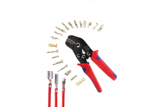 Herramienta para crimpar terminales de conexión rápida no aisladas de tamaño estándar, con un rango de cinco opciones de crimpado para distintos tamaños de terminales y cables. Con esta herramienta sus proyectos tendrán un acabado limpio y profesional. La herramienta de crimpado le permite unir cables AWG22-10 a terminales eléctricas tipo Faston no aisladas.