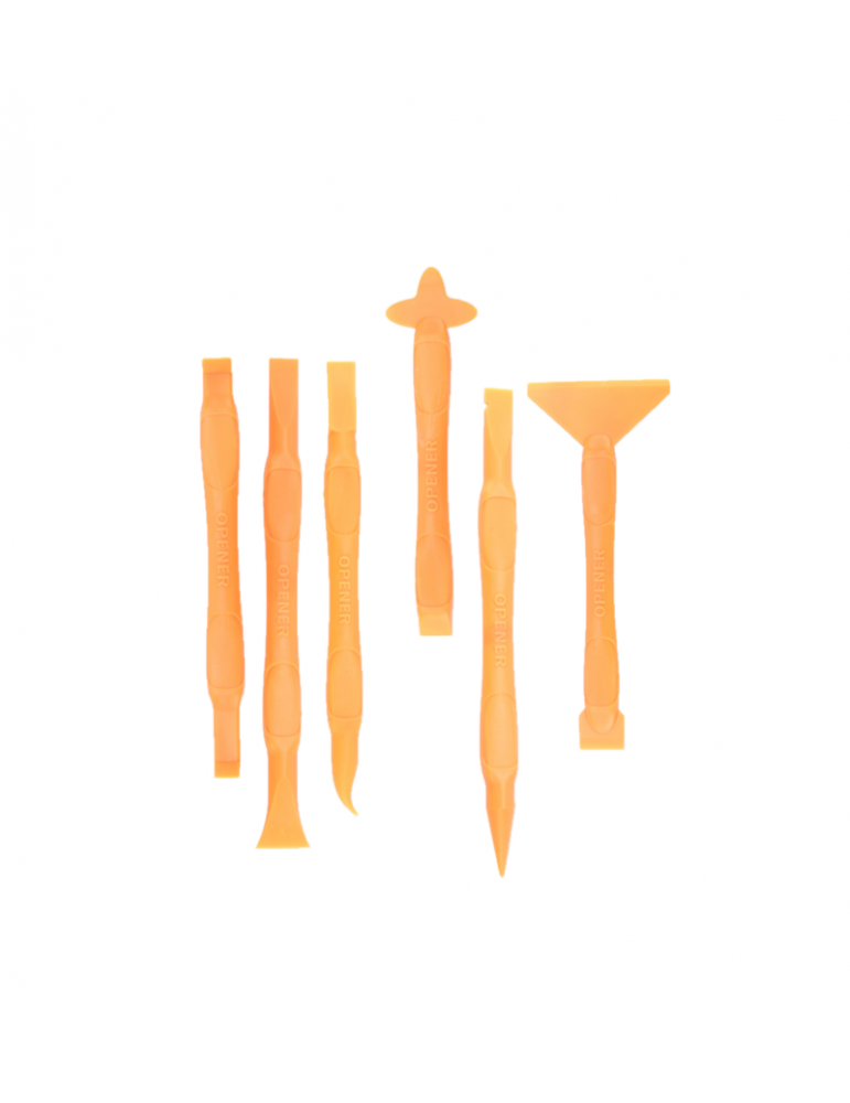 Kit de herramienta parara reparación de dispositivos electrónicos, facilita el desarme de partes sin dañar o marcar. Diseño de doble lado con extremos diferentes para un mejor desempeño.