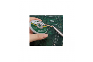 Hilo de cobre de alta calidad tejido con precisión en una trenza de 3.5 milímetros de ancho por 1.5 metros de largo, diseñado para quitar residuos, excesos de estaño en los PCB después de soldar o remover algún dispositivo del circuito. Tiene una excelente conductividad térmica y es resistente a la oxidación y corrosión.